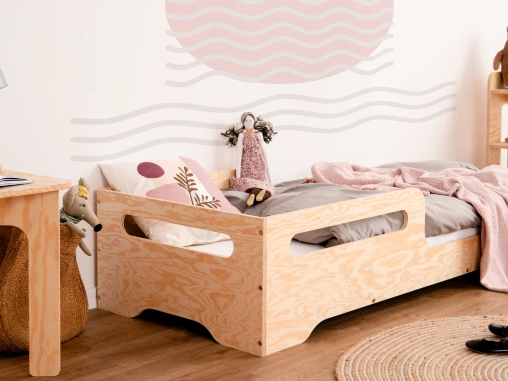Sa construction basse permet un accès facile, favorisant ainsi le développement de l’autonomie de l’enfant, tandis qu’une barrière s’étendant sur la moitié du lit assure un sommeil sécurisé. Fabriqué en contreplaqué de pin de haute qualité, ce lit, disponible en 11 couleurs et 20 tailles, s’intègre parfaitement dans tout intérieur.