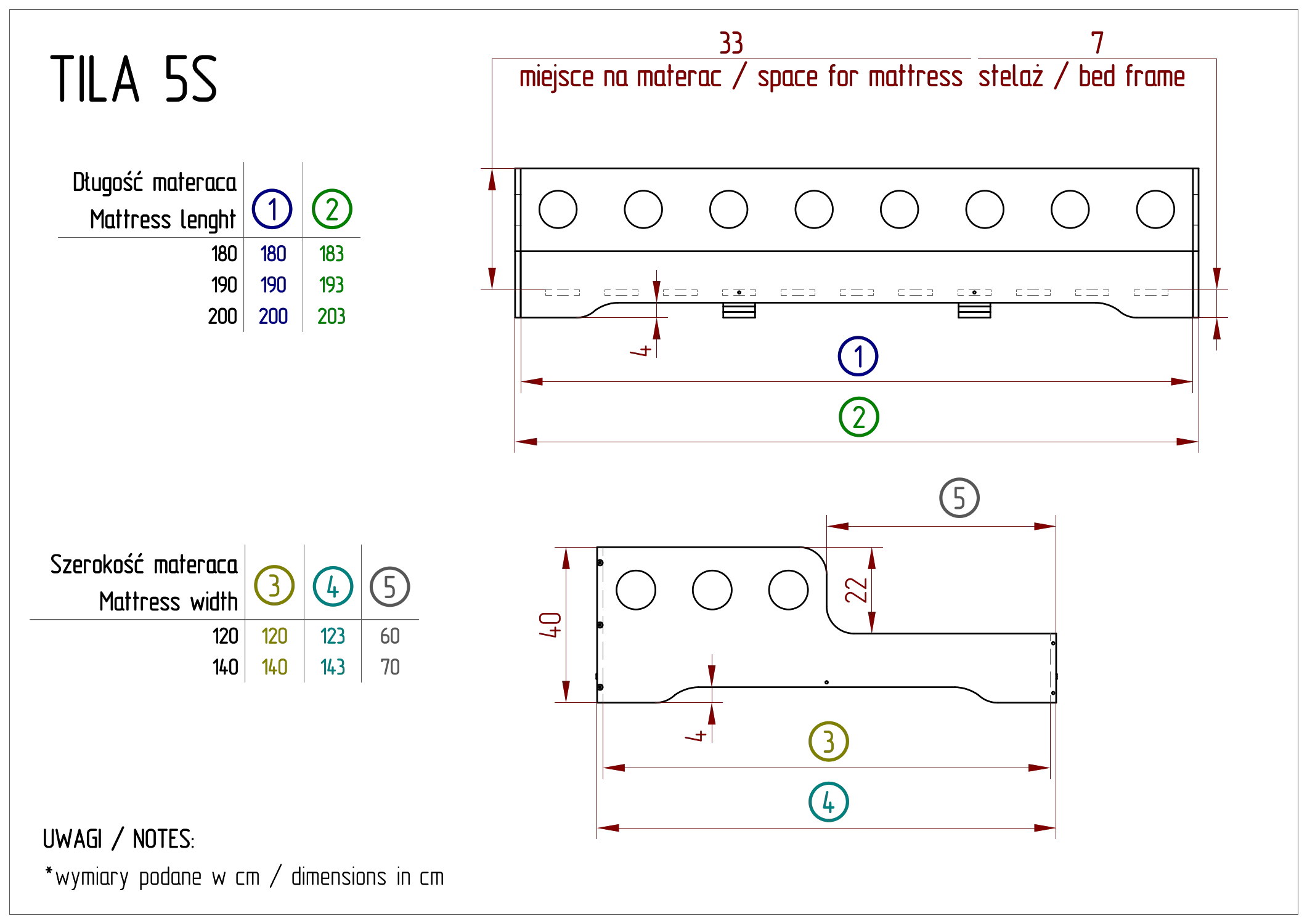 Sommier à lattes droites pour le lit TILA 7 avec une charge maximale 300 kg