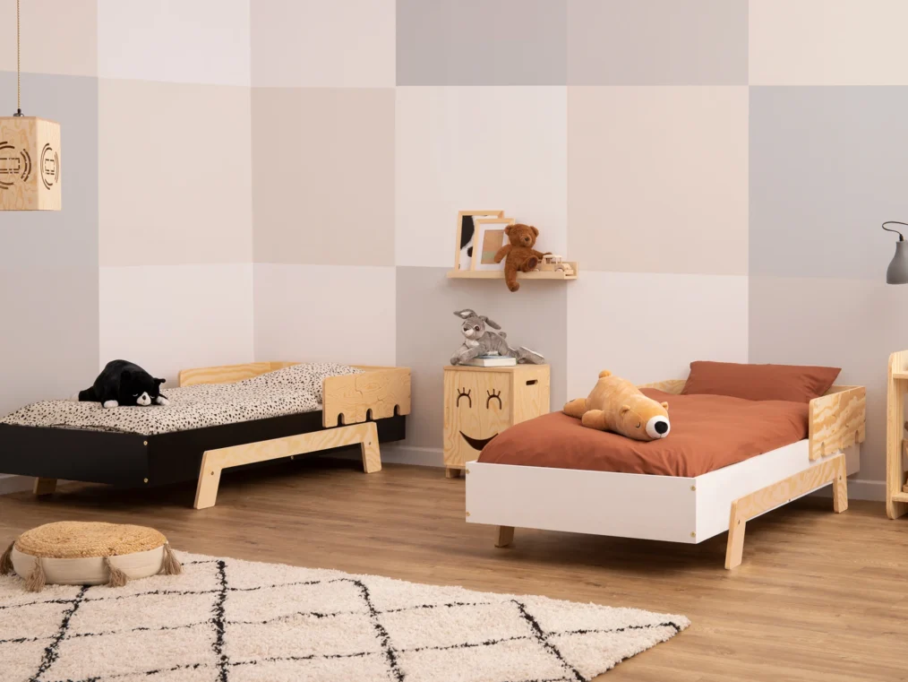 Issu du concept PUZZLE 6-en-1, le modèle BR1 fait partie de la même famille modulaire : une base unique, plusieurs configurations possibles selon l’âge et le niveau d’autonomie de votre enfant. Il peut accompagner la transition entre le couchage très sécurisé du BR2 et le lit plus ouvert des versions sans barrière.