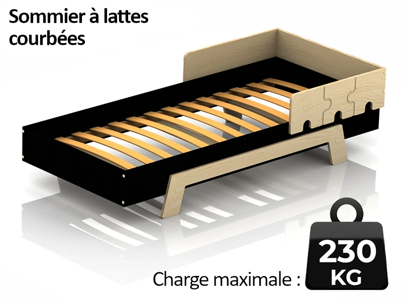 Le lit PUZZLE supporte sans aucune difficulté une charge allant jusqu’à 230 kg. Cela permet aux parents d’être totalement rassurés quant à la sécurité de leurs enfants.