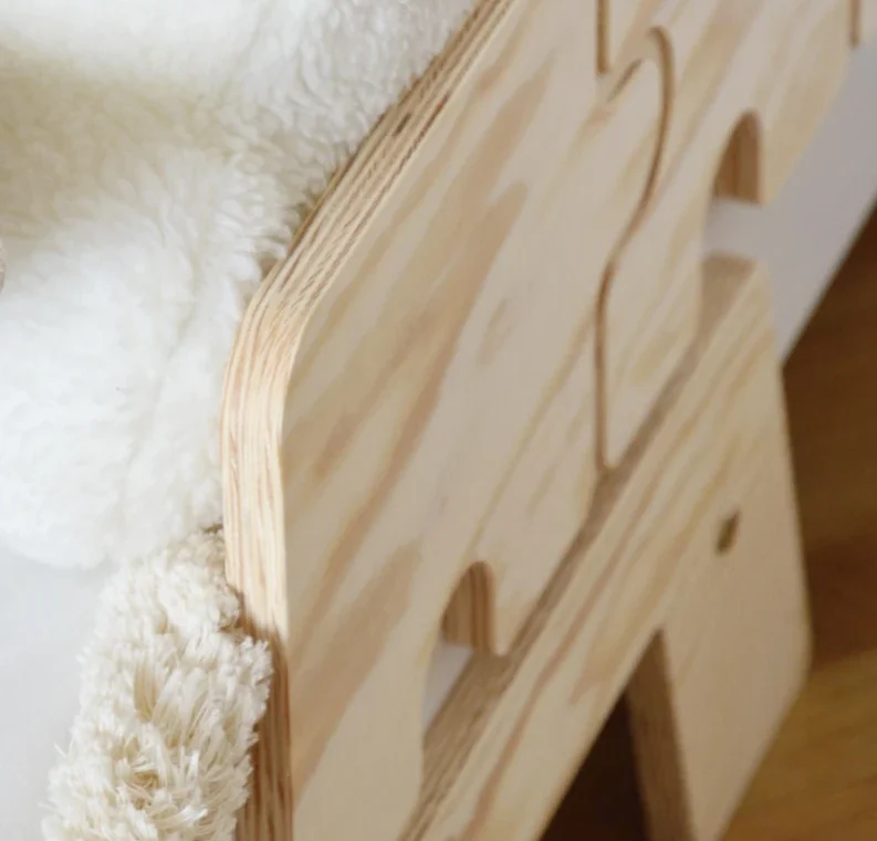 Les processus de finition du contreplaqué, tels que le ponçage et le brossage, rendent sa surface lisse et agréable au toucher. De plus, en raison du veinage naturellement irrégulier, chaque lit fabriqué avec ce matériau est unique. Cela confère aux produits un caractère et une esthétique incomparables.