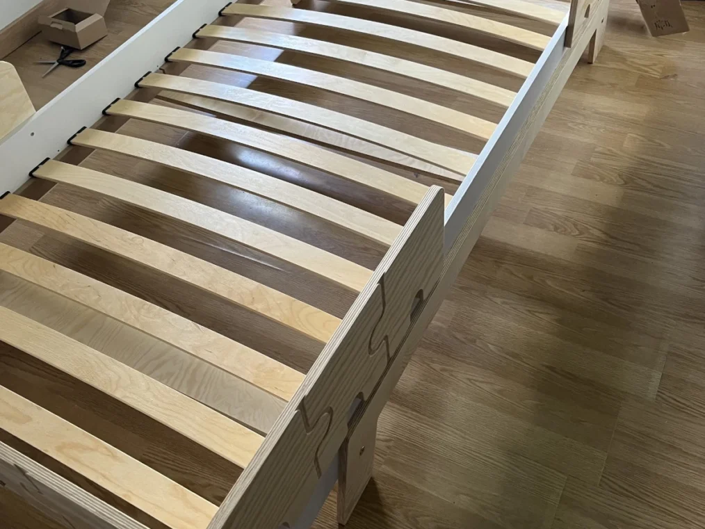 Équipé de pieds robustes, le lit offre une excellente stabilité. Il est fabriqué en contreplaqué de pin de haute qualité, avec des bords lisses pour limiter les risques de blessures. Lorsque votre enfant souhaite une chambre au style plus « adulte », il suffit de retirer les barrières pour obtenir une structure au design minimaliste.