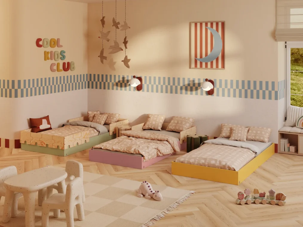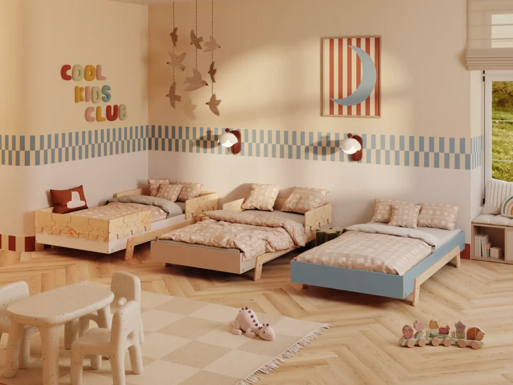 La couleur, c’est aussi la qualité et la sécurité. Chaque lit est peint à la main, en plusieurs couches, avec une peinture écologique et certifiée. Le temps de séchage garantit une finition durable, sans odeur, prête à être utilisée dès la réception. Ça vaut la peine d’attendre ce résultat !