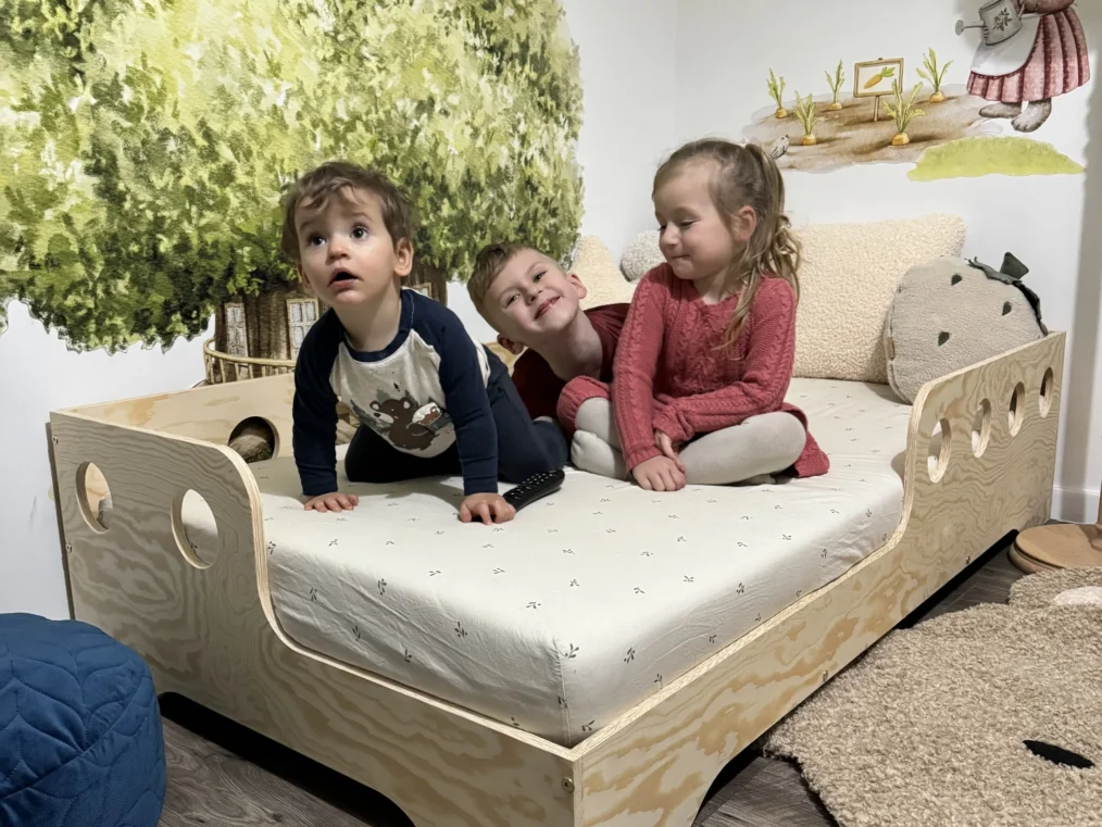 La couleur, c’est aussi la qualité et la sécurité. Chaque lit est peint à la main, en plusieurs couches, avec une peinture écologique et certifiée. Le temps de séchage garantit une finition durable, sans odeur, prête à être utilisée dès la réception. Ça vaut la peine d’attendre ce résultat !