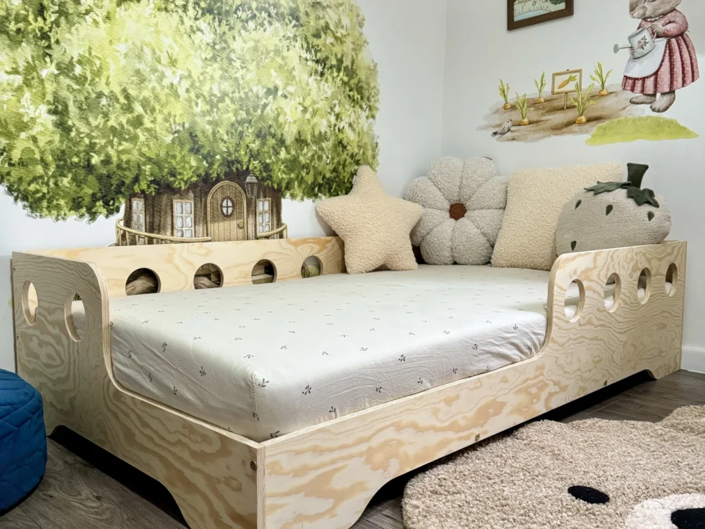 Sa construction basse et son entrée élargie permettent un accès facile, favorisant ainsi le développement de l’autonomie de l’enfant. Fabriqué en contreplaqué de pin de haute qualité, ce lit, disponible en 11 couleurs, 20 tailles et avec 2 variantes d’entrée, s’intègre parfaitement dans tout intérieur.