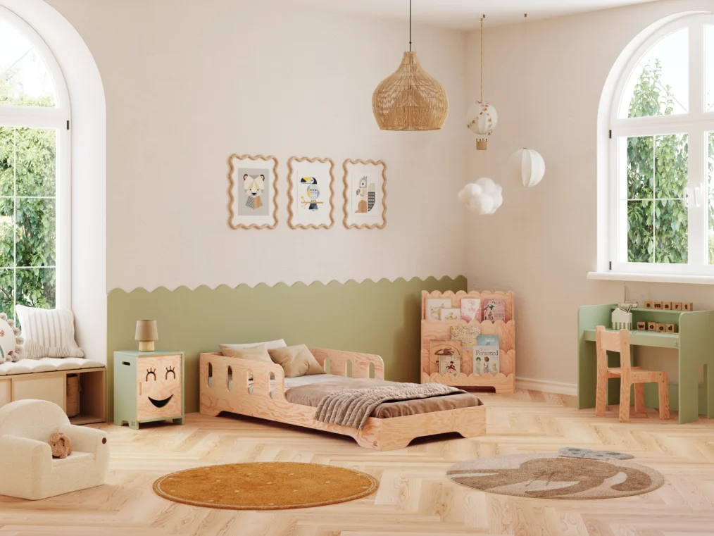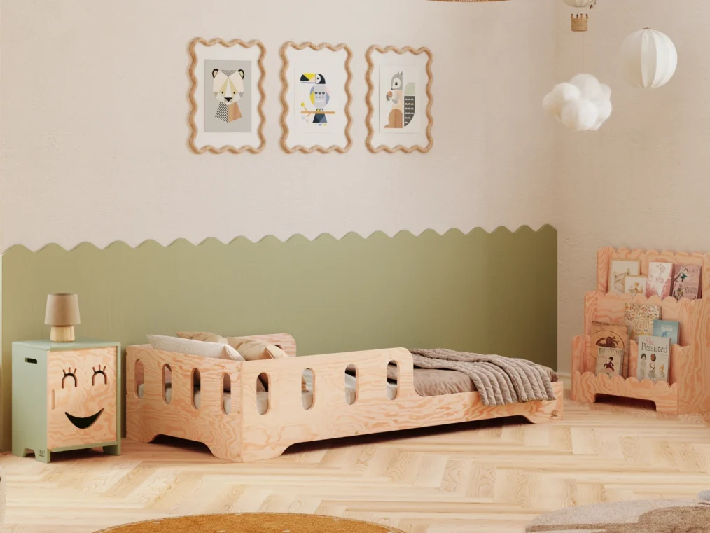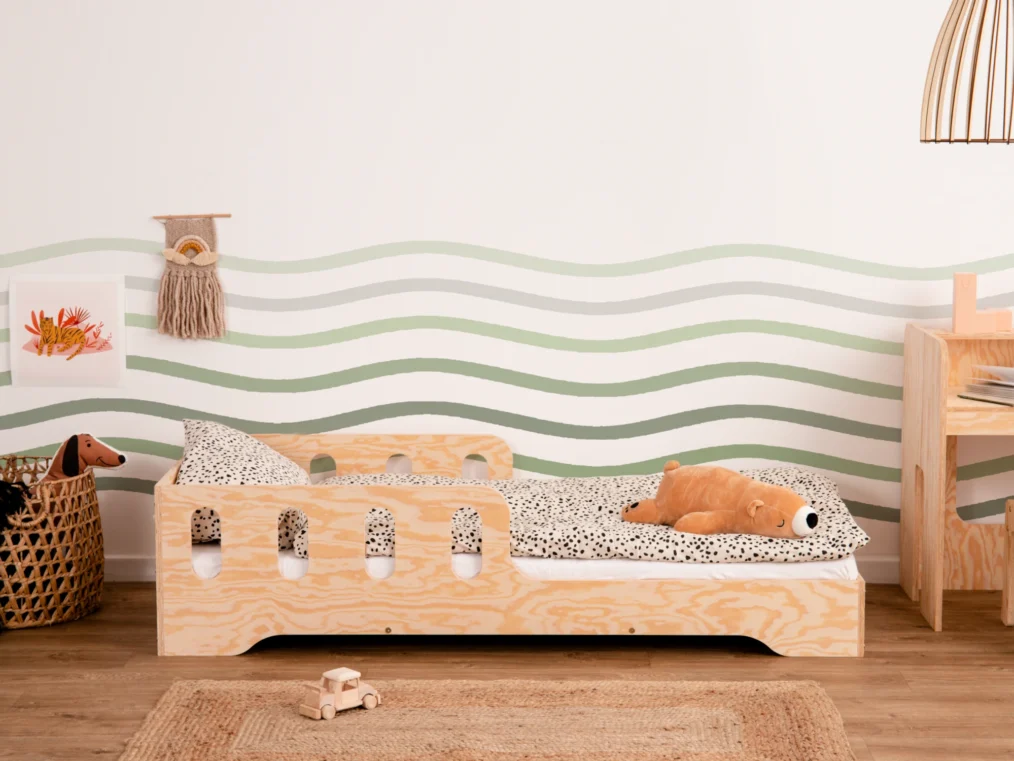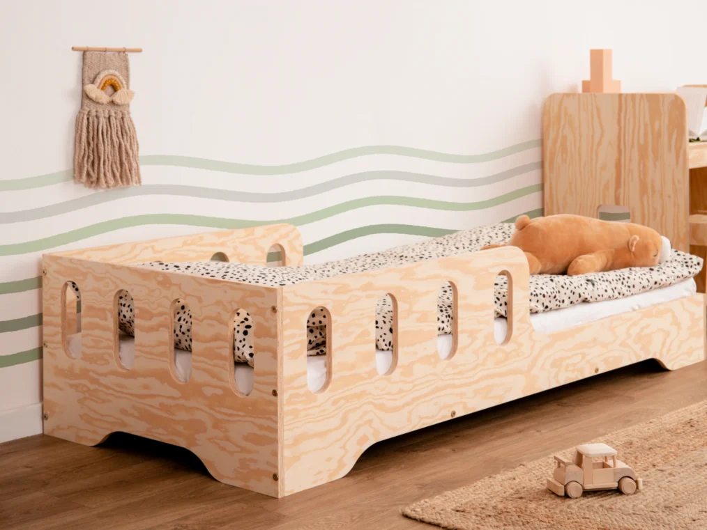Sa construction basse permet un accès facile, favorisant ainsi le développement de l’autonomie de l’enfant, tandis qu’une barrière positionnée au milieu du lit assure un sommeil sécurisé. Fabriqué en contreplaqué de pin de haute qualité, ce lit, disponible en 11 couleurs et 20 tailles, s’intègre parfaitement dans tout intérieur.