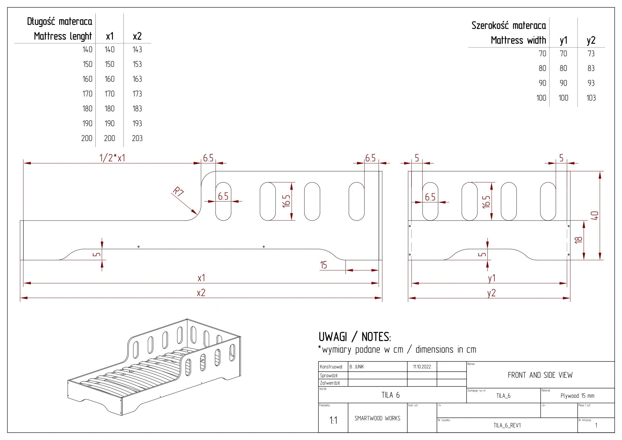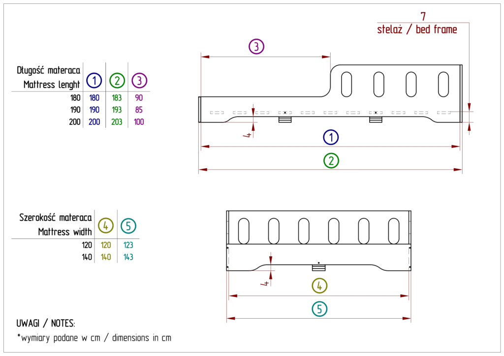 Les petites dimensions sont équipées d’un sommier à lattes courbées, tandis que les tailles à partir de 120 cm de largeur disposent d’un sommier à lattes droites.